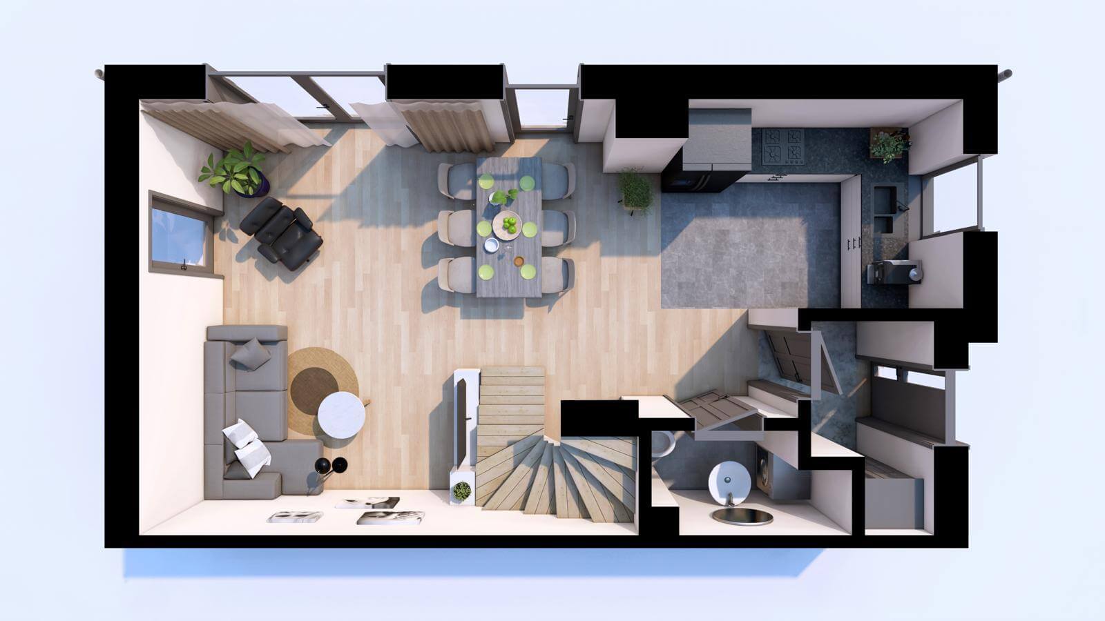 Każdy z lokali ma niezależne wejście oraz dwa prywatne miejsca parkingowe, dzięki czemu nie musisz martwić się o parkowanie – nawet dla gości.